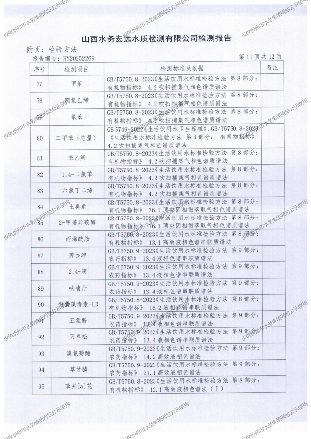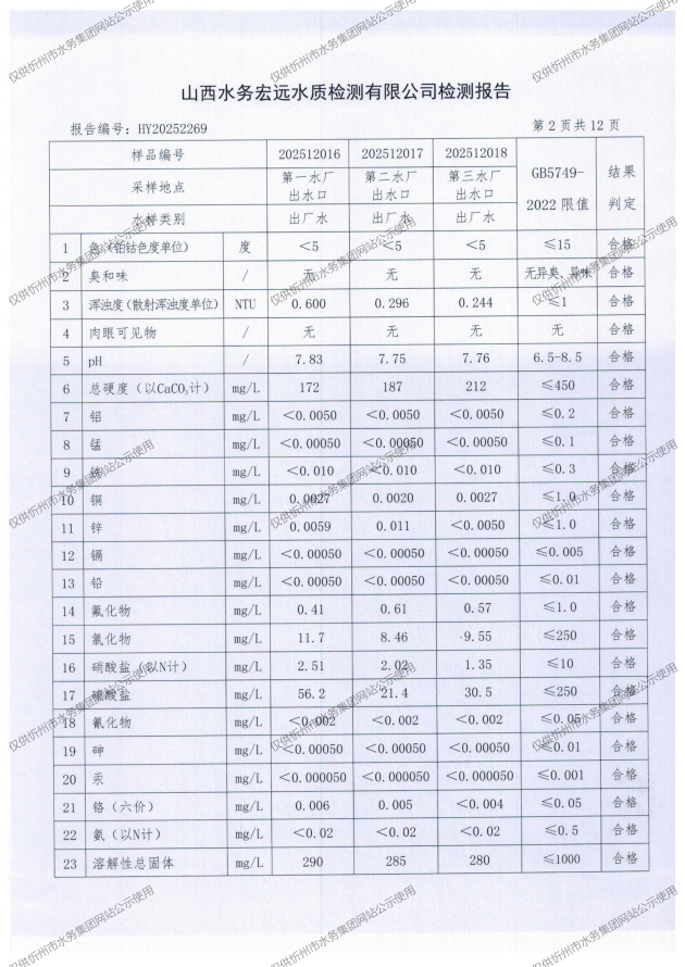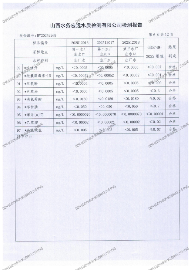 2025年忻州城區(qū)公共供水南水廠、三水廠、云中水廠出廠水97項(xiàng)水質(zhì)全分析